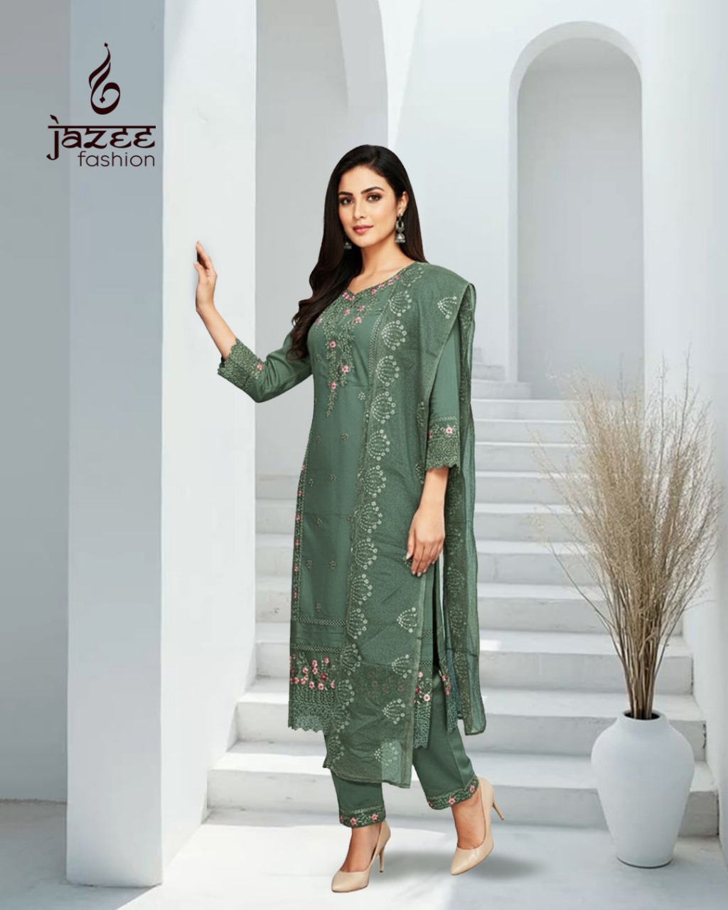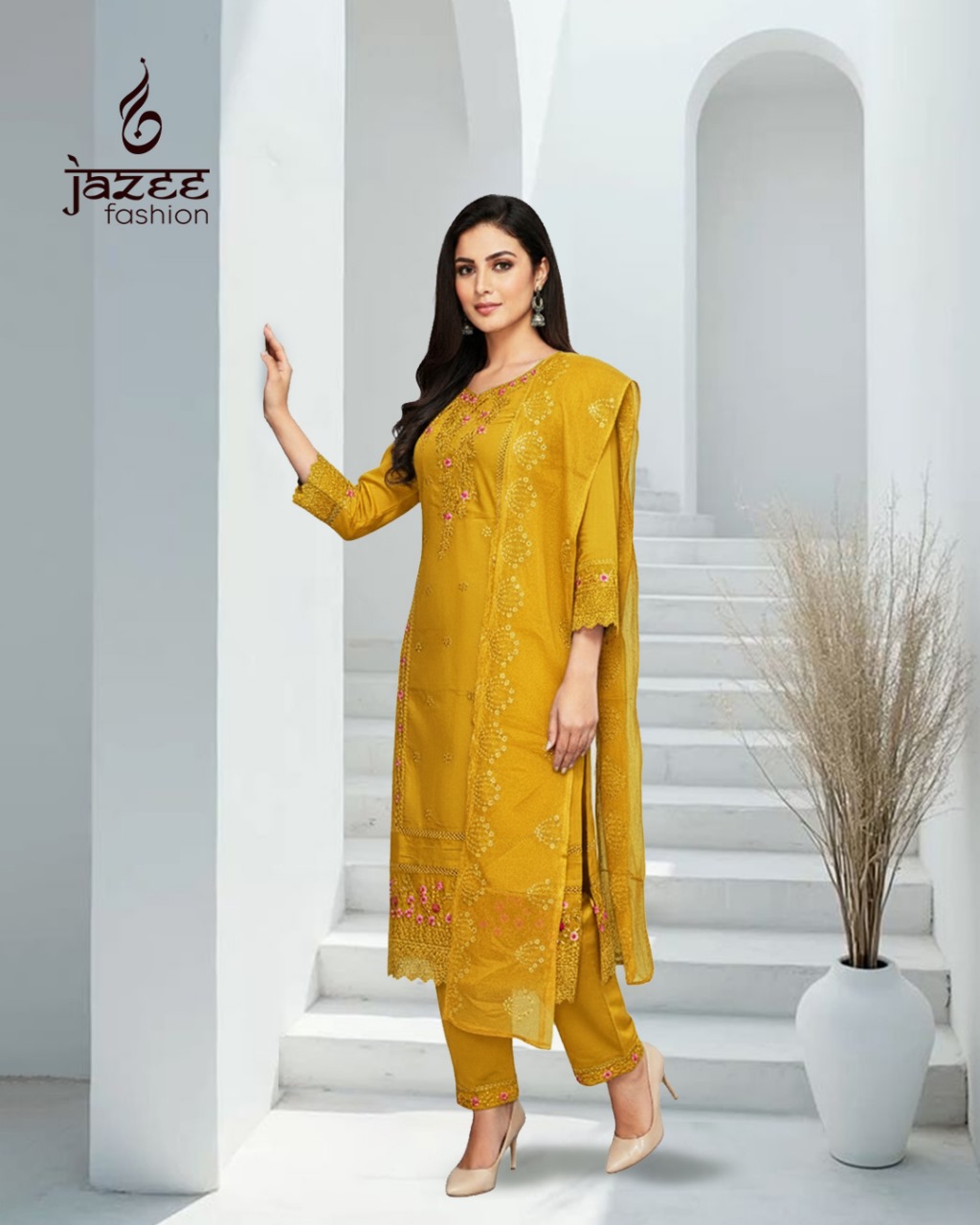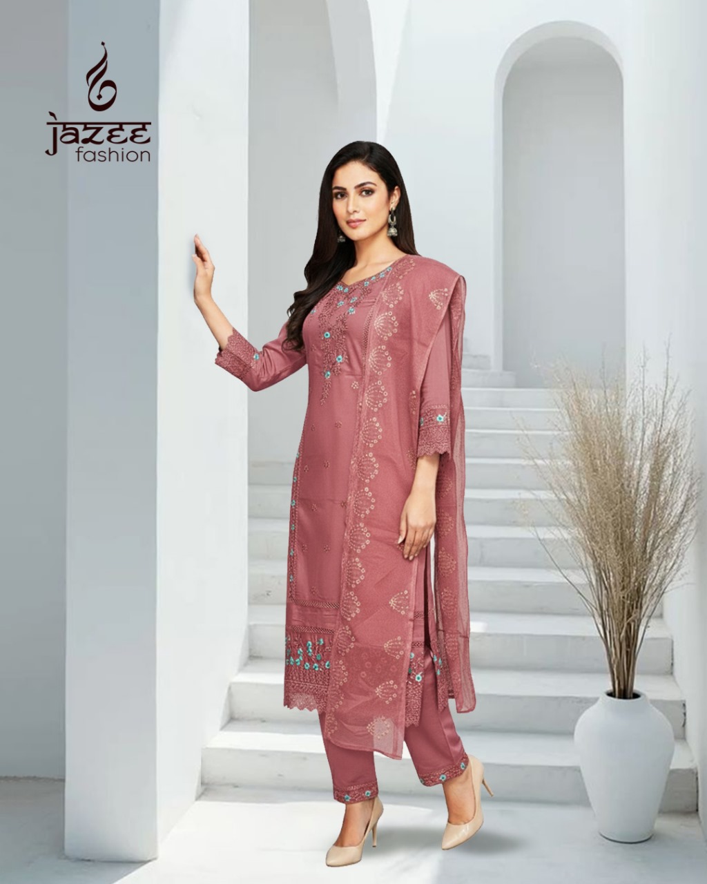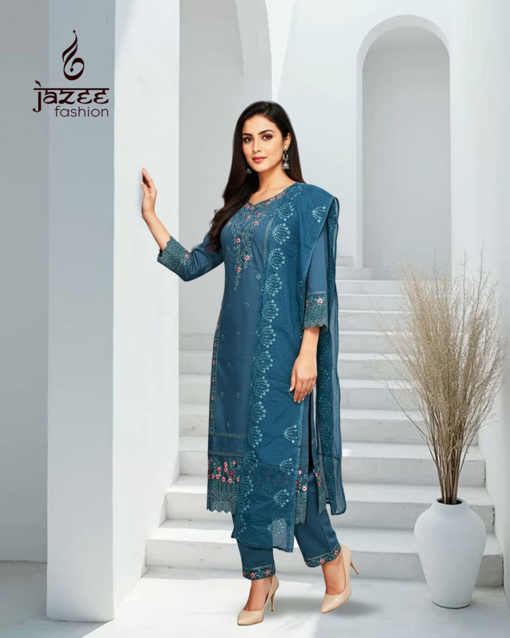 Alluring Floral Pattern on Lacy Fabric Available in 4 Colours XXL Size